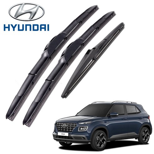 현대 자동차 베뉴 차량용 하이브리드 와이퍼 윈도우브러쉬 전면 후방 1+1+1, 베뉴(19~현재)-1SD600+450mm, FR210(11인치)베뉴-19.07~현재